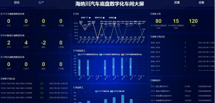 面对业务需求,海纳川汽车底盘系统通过建立数字化车间系统为工厂打下信息基础平台,在业务层面改善工厂的生产管理、设备管理、质量管理水平,借助设备互联和系统集成,使得数据和流程更加透明化,快速推动企业智能制造的步伐。通过打通生产设备端接口实现联网,对关键数据收集展示,反映生产实时状况;通过引入信息化手段,实现车间生产过程信息的自动采集和快速追溯,信息数据自动反映生产绩效,提高生产透明度,引导生产管理人员制定改善措施。对生产业务流程和质量管理流程需要通过信息化手段实现流程管理,提高信息沟通效率和流程透明化。实现生产设备的维修、保养纳入信息化管理系统中,实时反映当前设备维修和保养状态,将信息及时反映给生产部门以便做出相应调整。
