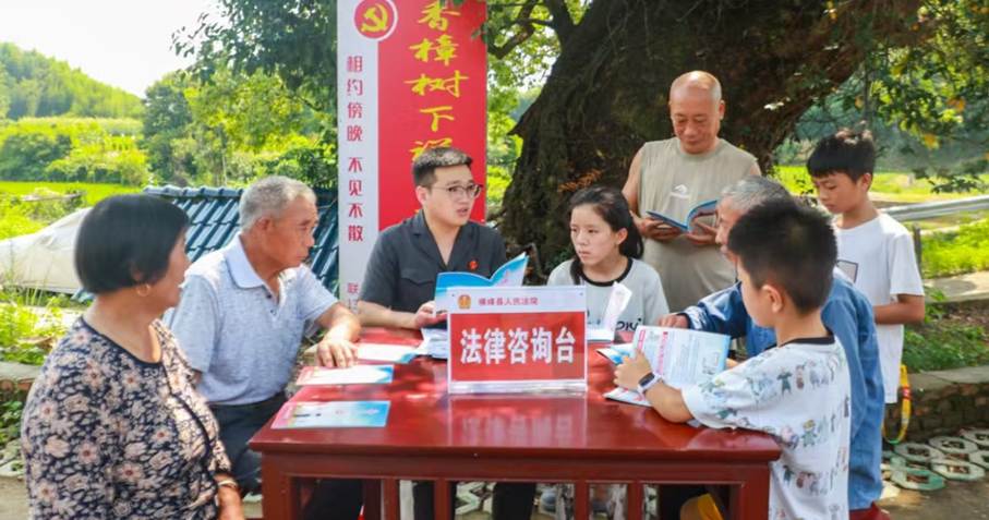 不断汲取“公开审判”、“巡回办案”等红色司法裁判智慧,在服务大局中弘扬正气、培育新风、浸润民心。一是以案释法行“正风”。注重发挥典型案例示范引领作用,让公平正义“可见可触”。二是助村自治树“新风”。通过参与“书记管事连心”“香樟树下说家事”等村民议事活动,助力提升乡村治理的法治化水平。三是生动普法化“民风”。“线上+线下”融合推进普法宣传,营造浓厚法治氛围。通过组建“女童保护法治宣讲团”,开展“岑阳夜话”基层活动、组织村民参与庭后评议等方式,着力培育文明乡风、良好家风和淳朴民风,持续激活乡村善治内生动力,弘扬新时代“枫桥经验”治理效能。