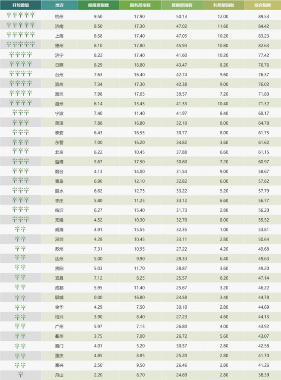 中国开放数林指数城市综合排名(前50名)