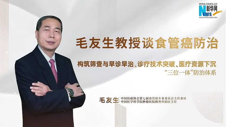 近日,《新華名醫》欄目特邀中國抗癌協會第七屆食管癌專業委員會主任委員、中國醫學科學院腫瘤醫院胸外科毛友生教授,為我們深入剖析我國食管癌的防治現狀,解讀診療技術的前沿進展,為患者和公眾指明方向。
