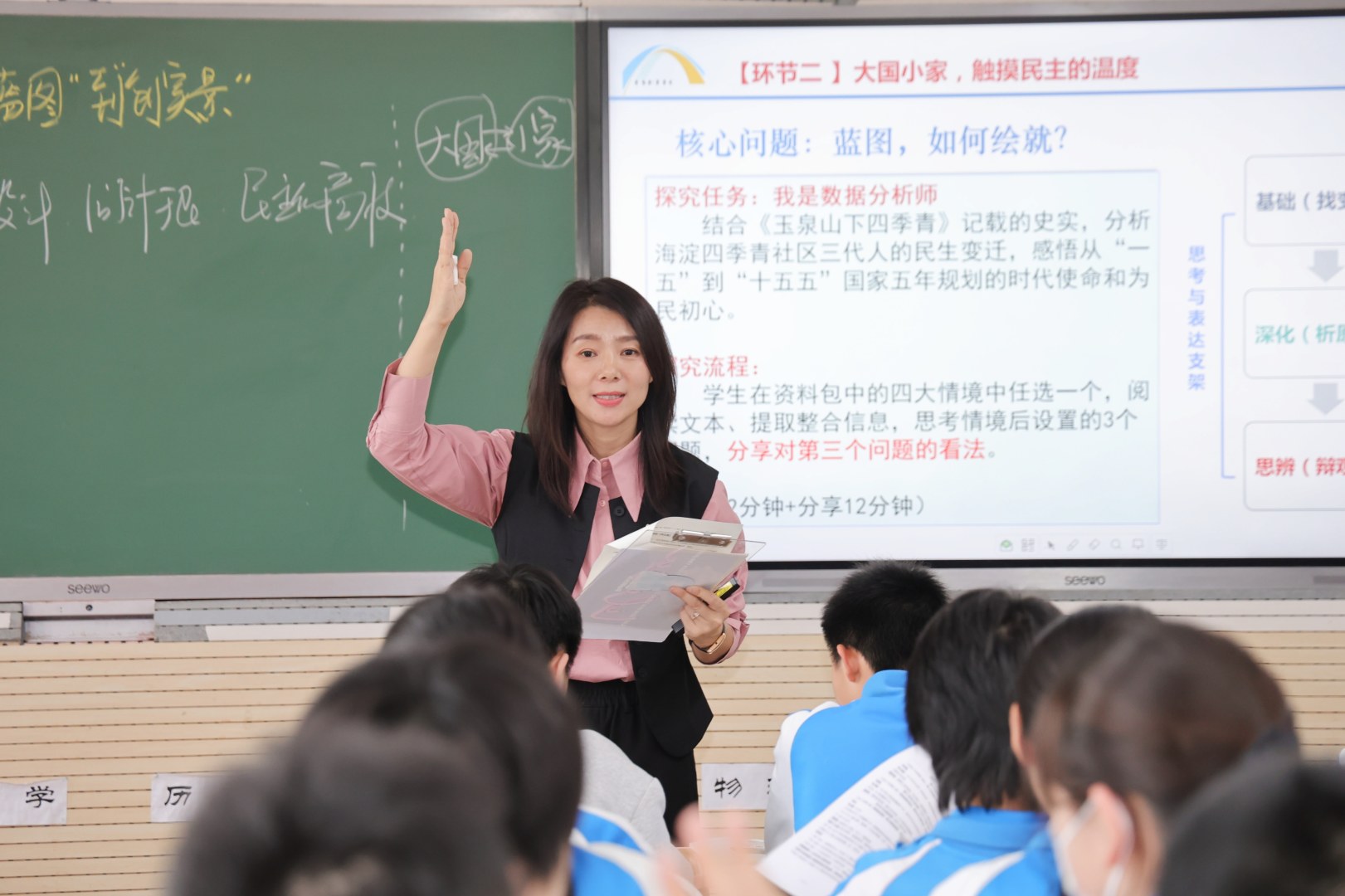 本次活动以“高质量发展”为统领性主题,纵向贯通大学、高中、初中、小学全学段,横向覆盖政治、语文、英语、物理、化学、历史、戏剧七大学科,从制度法治支撑、科技创新赋能、区域协同发展、绿色发展实践、精神文化引领等视角解码高质量发展,将高质量发展理念转化为立德树人的生动实践。