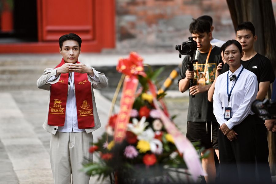8月24日,中国国家话剧院演员张艺兴来到山东济宁曲阜孔庙,认真学周揖礼、诚心拜谒,表达对中华先贤的崇高敬意、对中华优秀传统文化的努力传承。
