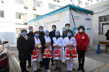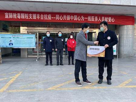2月7日是今年春节假期后首个工作日,“同心·共铸中国心”项目组委会在北京市丰台区卫生健康委员会支持下,将紧急调拨的防治新冠肺炎药品“宣肺败毒颗粒”捐赠并分发给丰台区抗疫前线的医务工作者,以支持他们抗击此轮北京疫情。