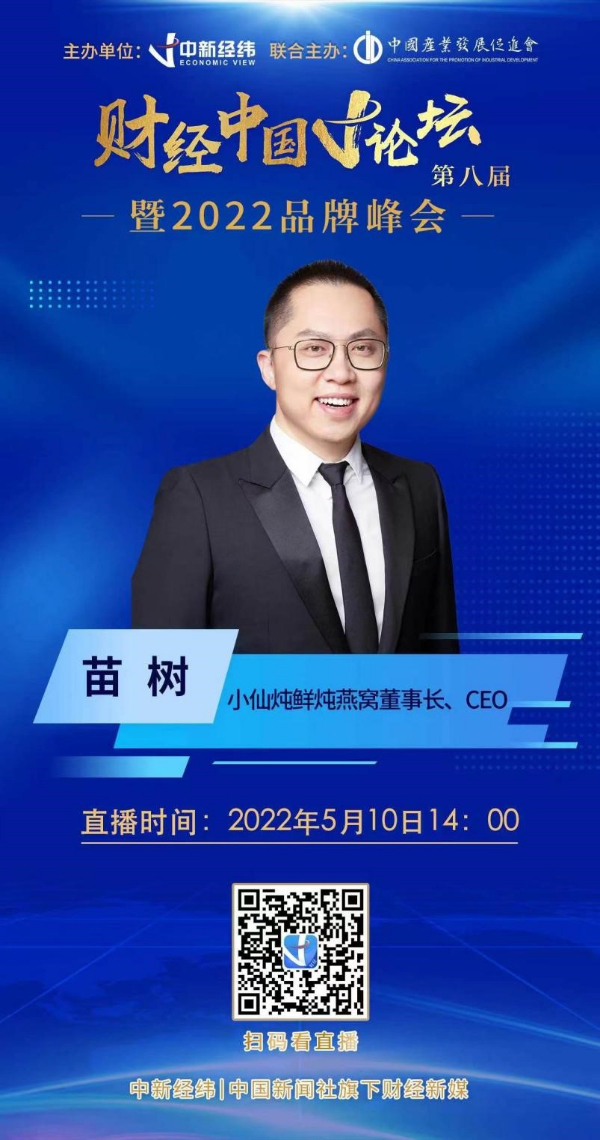 2022年5月10日,第六个“中国品牌日”到来之际,第八届财经中国V论坛暨2022品牌峰会在线上举行。小仙炖鲜炖燕窝作为中式滋补行业代表受邀出席,与各领域头部企业共话中国品牌的成长与发展。小仙炖鲜炖燕窝董事长、CEO、党支部书记苗树发表了《以创新传承诠释中国品牌的新鲜力量》主题演讲。
