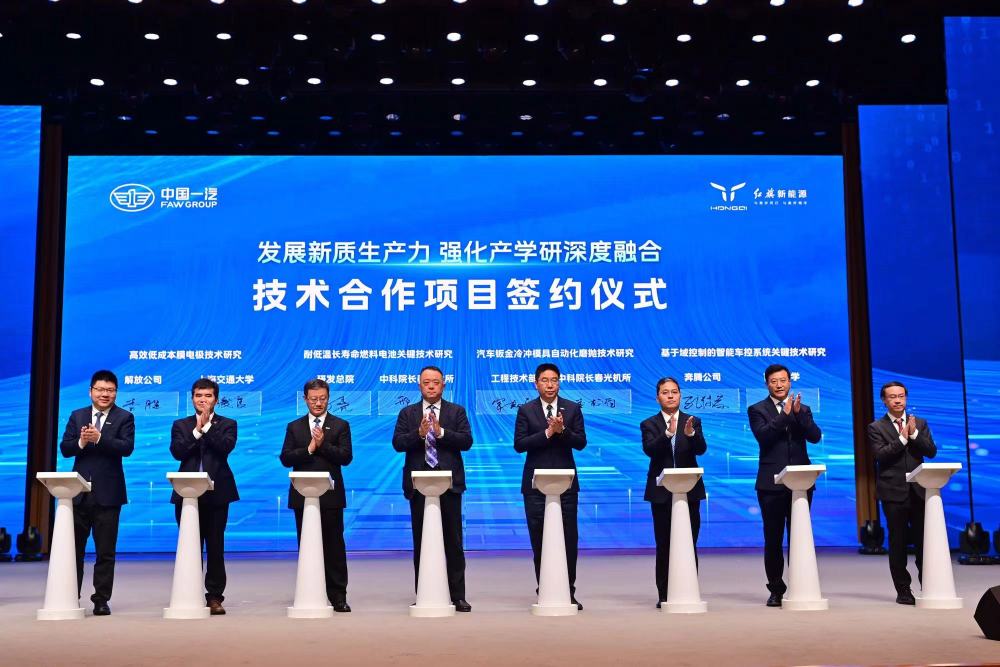此次科技大会上,一汽还与吉林大学、上海交通大学、中国科学院长春光学精密机械与物理研究所、中国科学院长春应用化学研究所等签约技术合作项目。同时,一汽还与亿咖通科技、大疆车载签署战略合作协议,与中国诚通签署战略性新兴产业协同合作协议,分别在智能座舱、智能驾驶、新能源汽车产业链建设等方面展开合作,共同打造红旗智能座舱、红旗OS和红旗品牌高端手机等产品,实现合作共赢。