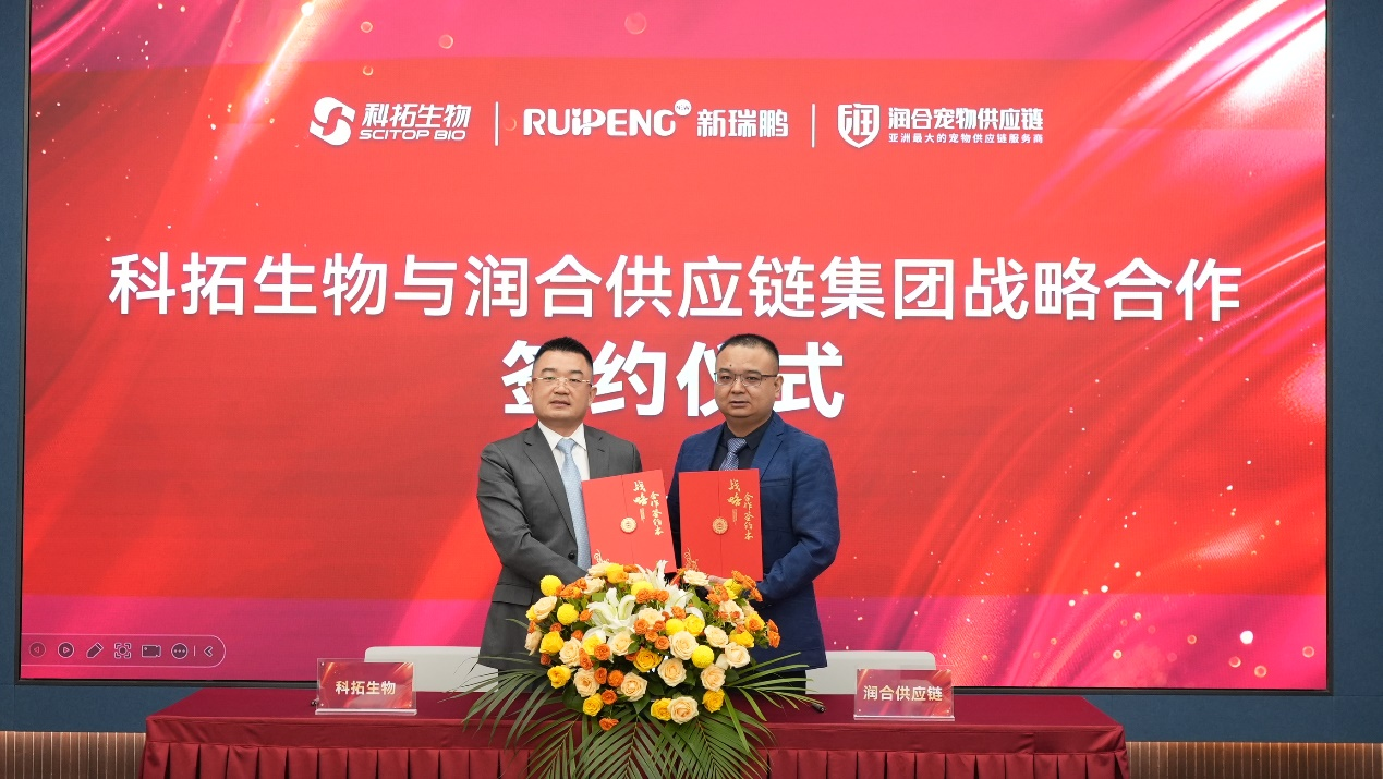 李万邦表示,“润合供应链集团作为新瑞鹏集团的成员,一直秉承着企业精神,致力于成为全球最专业的宠物全产业链综合服务商。我们深知,宠物健康不仅关乎每一个宠物家庭的幸福,也是我们行业发展的重要基石。科拓生物在益生菌领域的专业优势,结合润合供应链集团在市场拓展和物流配送方面的专业能力,将为我们合作项目的产品打开更广阔的市场空间。”