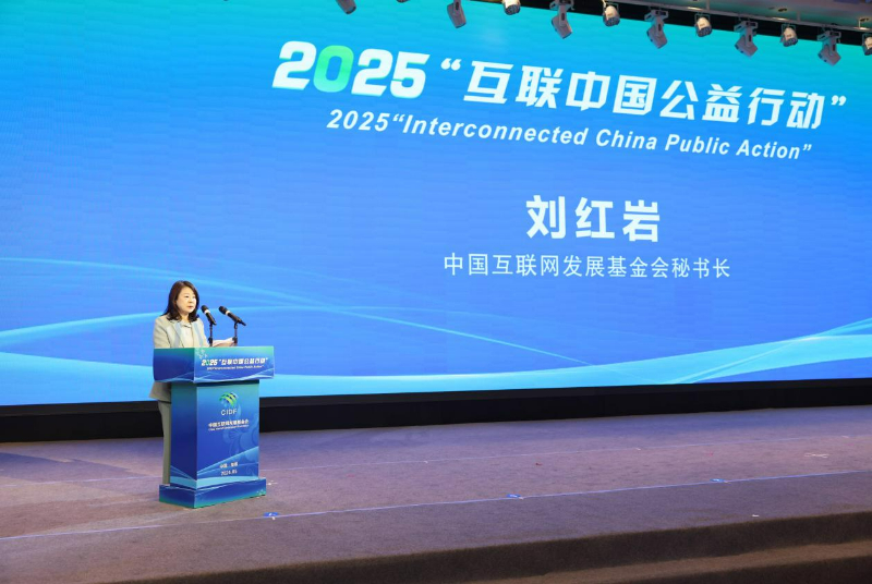 图为刘红岩发布2025“互联中国公益行动”实施方案。新华网发