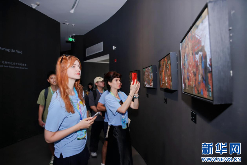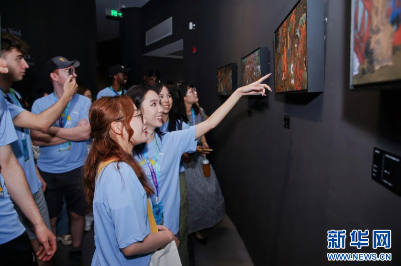 2025“汉语桥”全球外国人汉语大会故事会复赛及决赛将于7月6日至9日在杭州电子科技大学举办。晋级复赛的50名选手相聚杭州,以中文为桥讲述精彩故事。图为7月3日“汉语桥”选手参观《黑神话:悟空》艺术展。新华网发pagebreak