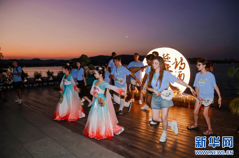 2025“汉语桥”全球外国人汉语大会故事会复赛及决赛将于7月6日至9日在杭州电子科技大学举办。晋级复赛的50名选手相聚杭州,以中文为桥讲述精彩故事。图为7月3日“汉语桥”选手在西湖参与文化体验。新华网发pagebreak