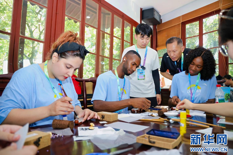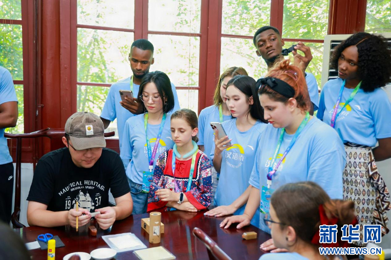 2025“汉语桥”全球外国人汉语大会故事会复赛及决赛将于7月6日至9日在杭州电子科技大学举办。晋级复赛的50名选手相聚杭州,以中文为桥讲述精彩故事。图为7月3日“汉语桥”选手在西泠印社进行文化体验。新华网发pagebreak