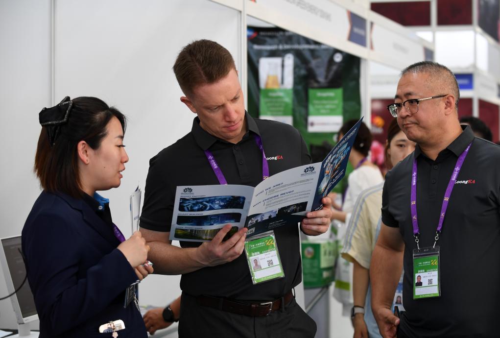 9月17日,在广西南宁国际会展中心,人们在展览现场交流。