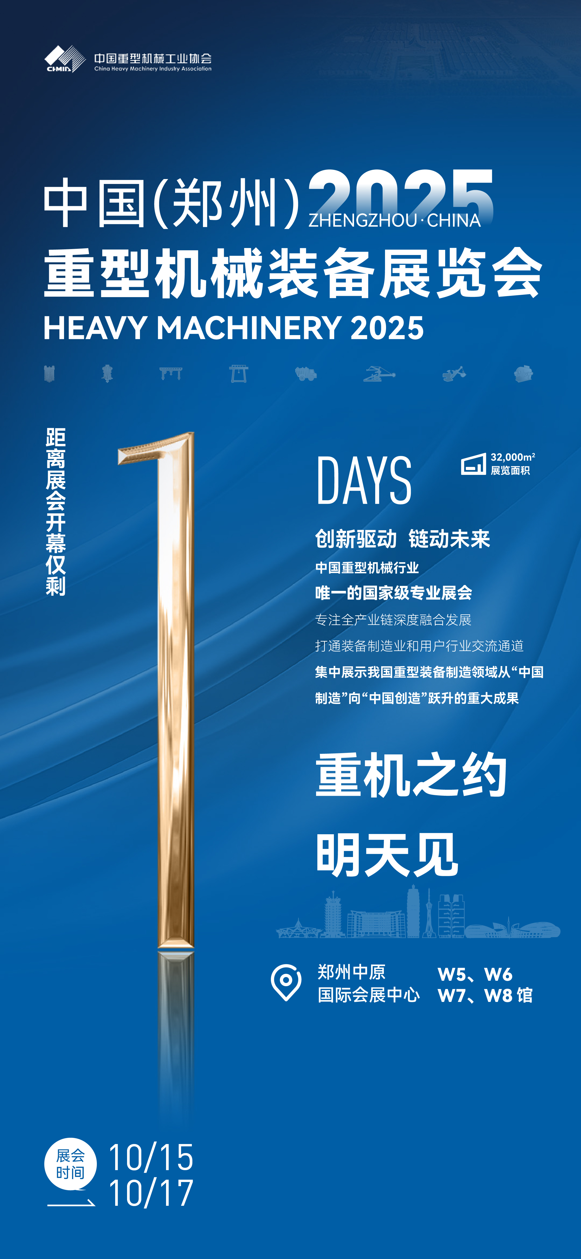 2025中国(郑州)重型机械装备展览会将于10月15日-17日在河南郑州中原国际会展中心举办。本届展会以“创新驱动·链动未来”为主题,旨在为行业搭建一个集中亮相的高质量平台。