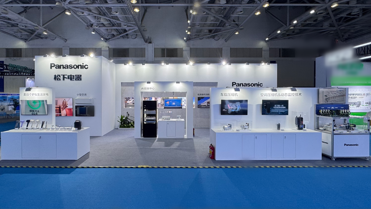 图为2025全球智能机械与电子产品博览会松下电器展台美容个护及生活家电展区。