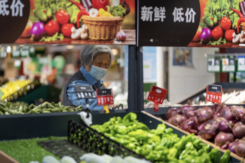 4月11日,消費者在南京市一家超市內選購蔬菜。 新華社發(杜懿攝)