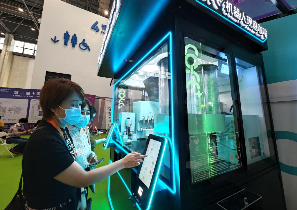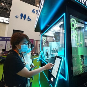 觀眾在消博會無人咖啡亭購買咖啡。新華社記者郭程 攝