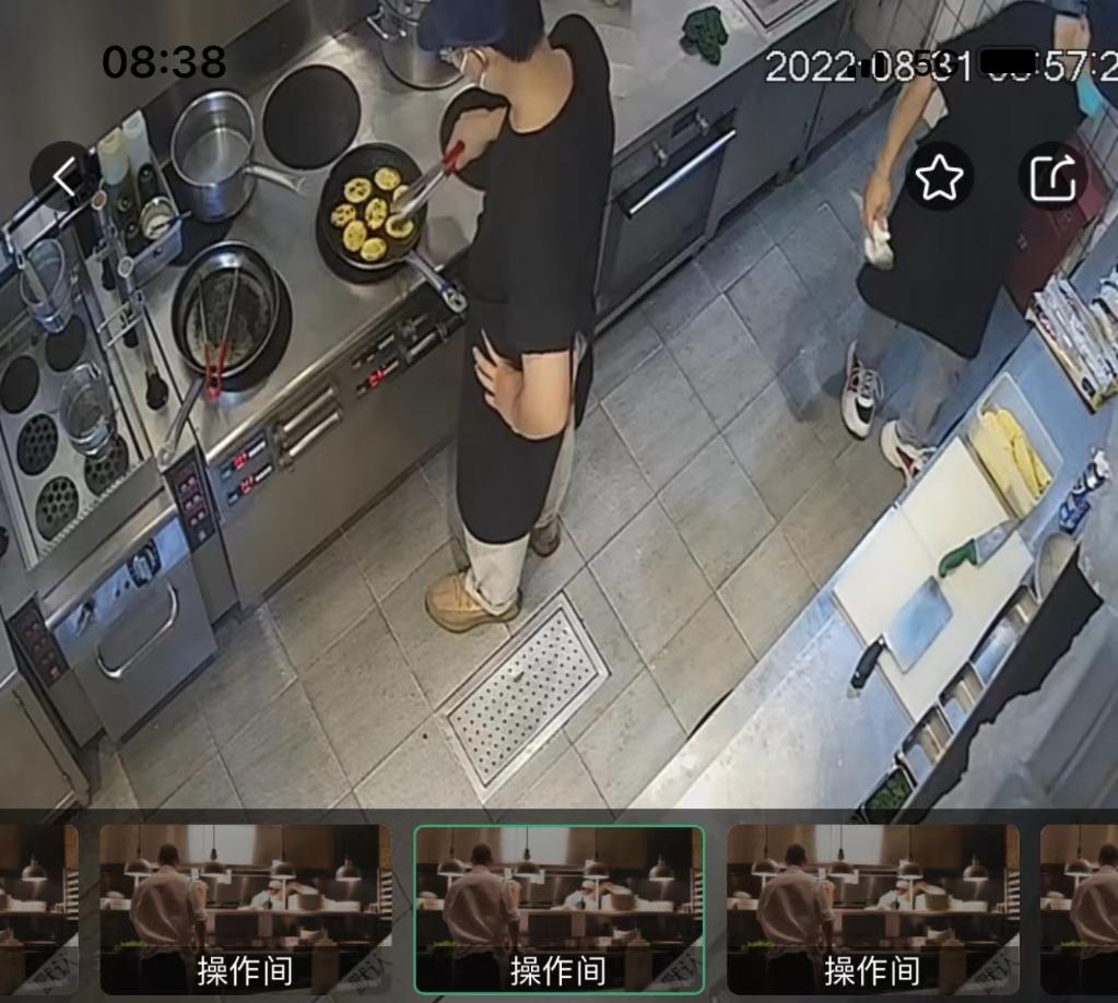 “查安康”App上的北京某餐廳后廚直播畫面。(“查安康”App截圖)
