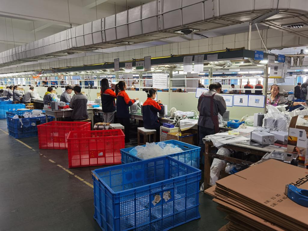 2022年10月19日,在慈溪市富運(yùn)電器有限公司車間內(nèi),工人們正在生產(chǎn)取暖設(shè)備。新華社記者 顧小立 攝