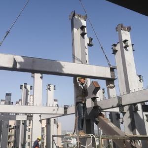 看不見成堆垃圾,沒有漫天揚塵,聽不到長時間的刺耳噪聲。預先從工廠訂制的墻板、樓梯等構件,整齊地碼放在施工現場,工人像“搭積木”一樣麻利地“拼裝”,一棟棟建筑拔地而起。這就是裝配式建筑。