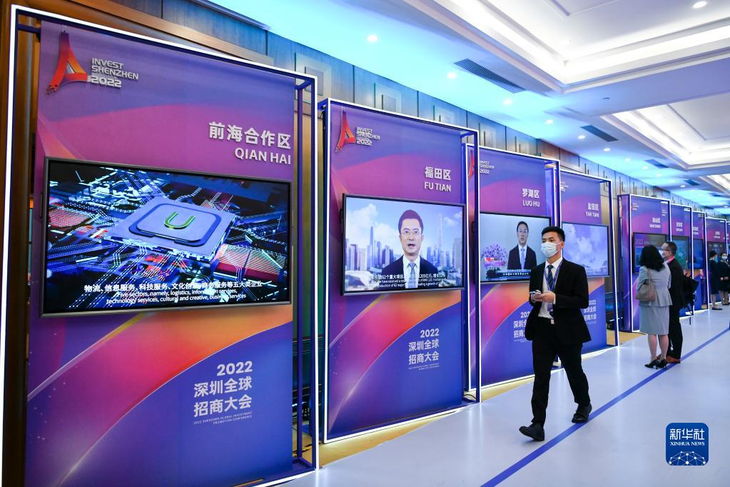 12月9日,2022深圳全球招商大會現場展示深圳各區招商視頻。新華社記者 梁旭 攝