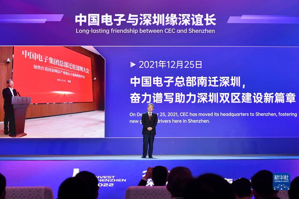 12月9日,在2022深圳全球招商大會上,中國電子信息產業集團有限公司董事長曾毅進行演講。新華社記者 梁旭 攝