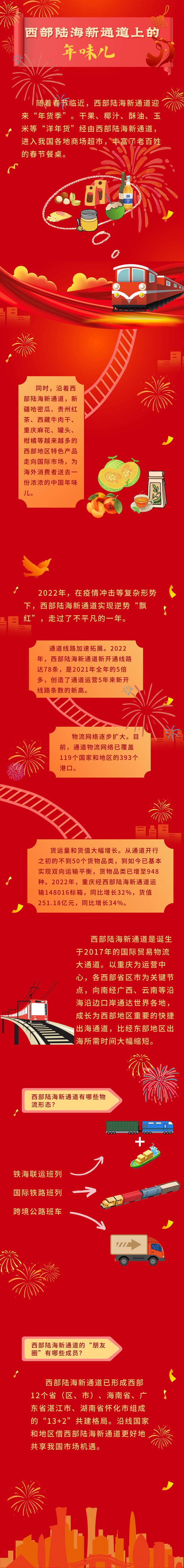 春節臨近,年味兒漸濃。一批又一批“洋年貨”正通過西部陸海新通道的鐵路、海運、公路,走上中國百姓的節日餐桌。5年來,這條將西部內陸與浩瀚海洋緊緊相連的通道加速拓展線路,物流網絡逐步擴大,運營質量穩步提升,成長為西部地區重要的快捷出海通道。