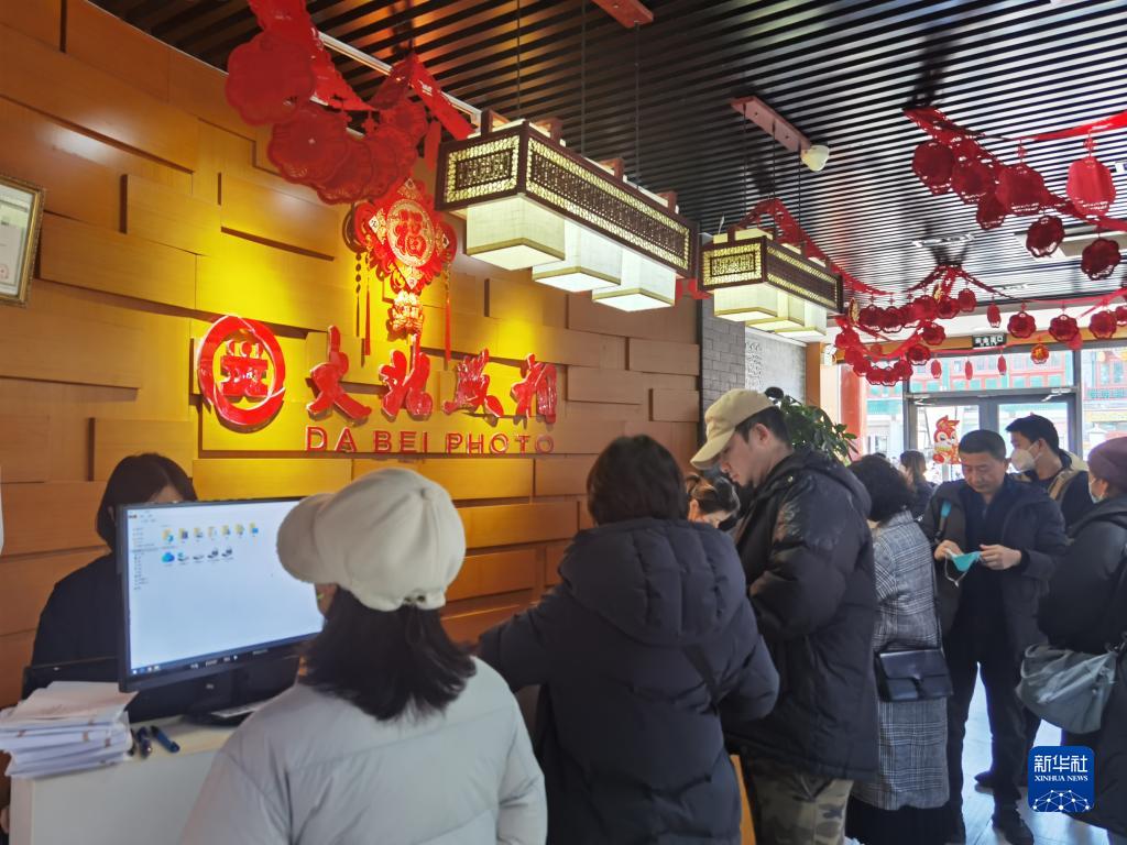 一張照片,紀念團圓,傳承記憶。從小就在大北照相館照相的宮先生也帶著自己的孩子前來拍照?!凹依镉羞@個傳統,也想給孩子留下美好的回憶?!遍_年以來,大北照相門市日均客流量2643人次,銷售同比增加45%,日均客流量同比增加37%,客流量最大時要排隊3個小時。