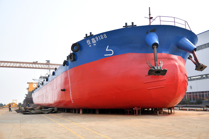 這是3月2日在沅江市湖南桃花江游艇制造有限公司拍攝的貨運船。新華社記者 陳振海 攝