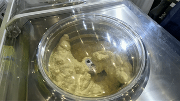 4月10日,意式冰淇淋展臺的手工冰淇淋機正在制作開心果味意式冰淇淋 新華社記者 袁睿 攝