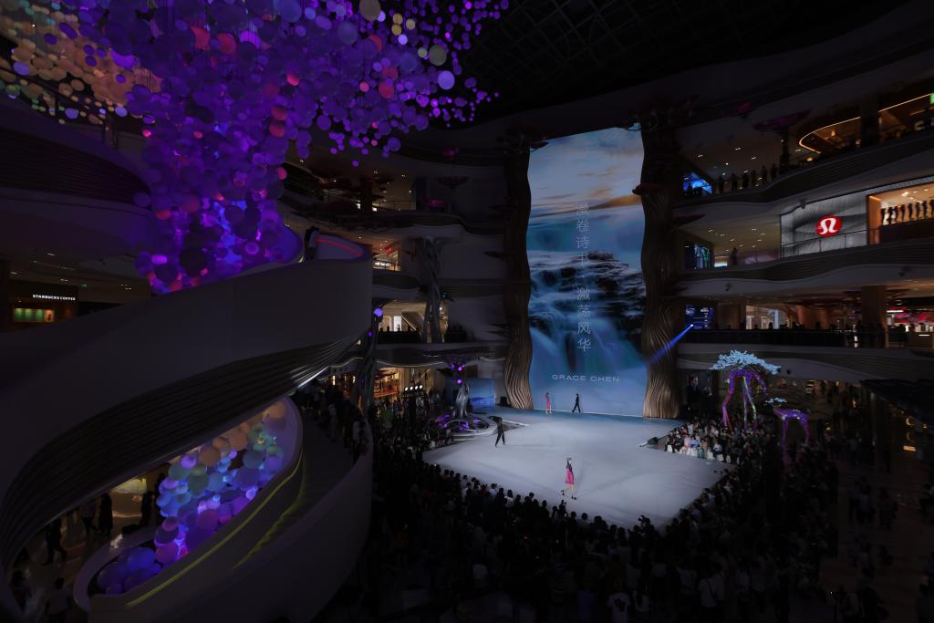 “免稅城原有的燈光以及藝術裝置,為這片場地的秀帶來了不可復制性?!贝舜螀⒄沟脑O計師楊夢瑩在觀看完開幕秀后表示,“平日的秀場都是比較簡單的燈光以及場景布置,這次可以自然融入室內的生態景觀,體驗非常好?!?/p>