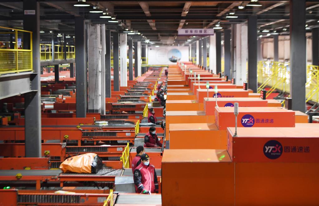 工人在圓通速遞北方總部基地工作。新華社記者馮維健 攝