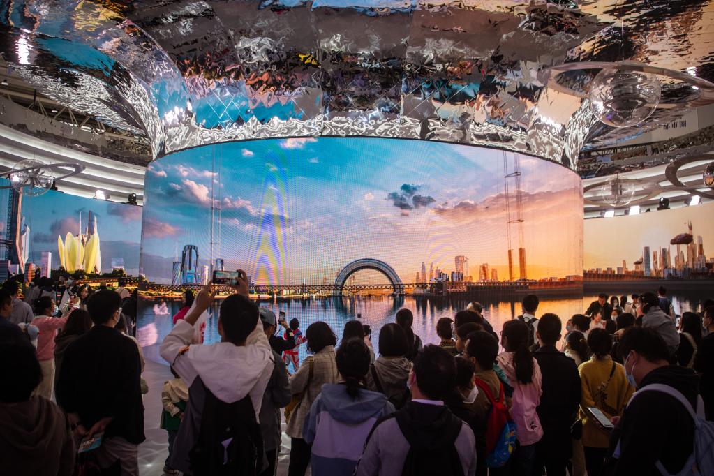 “炫酷又震撼,尤其是光影技術下的大美中國館以及超科幻的武漢館。逛一天展就走遍了整個中國,身臨其境地感受到各地大好山河與風土人情。”來自湖南的游客白夢圓說。