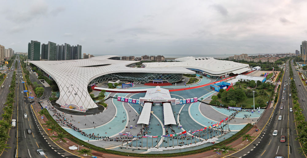 4月14日,觀眾有序排隊進場(無人機照片)。當日,第三屆中國國際消費品博覽會迎來社會公眾開放日,吸引觀眾前來觀看展覽、選購商品。新華社記者 楊冠宇 攝