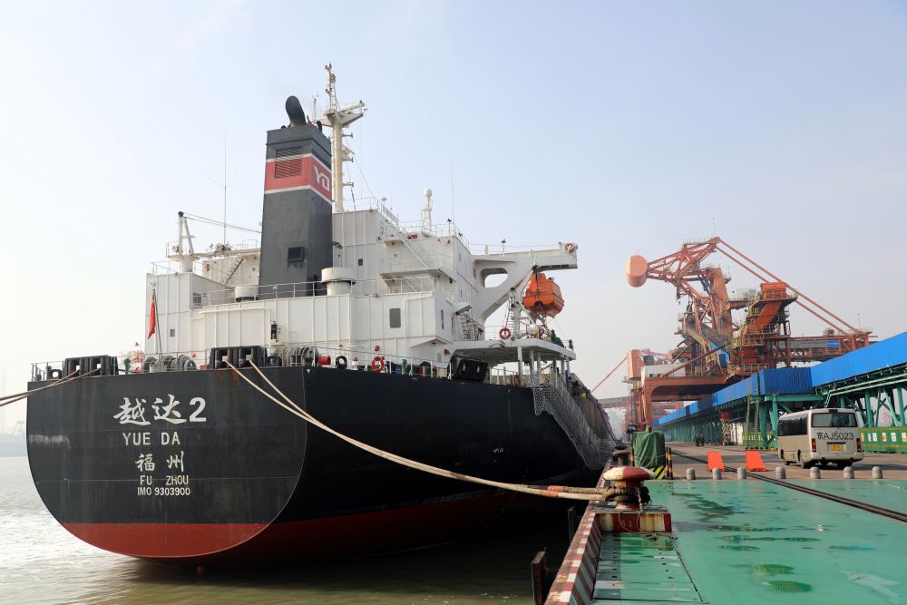 船舶停靠在國能黃驊港四期碼頭進行裝船作業(2023年3月9日攝)。新華社記者 駱學峰 攝