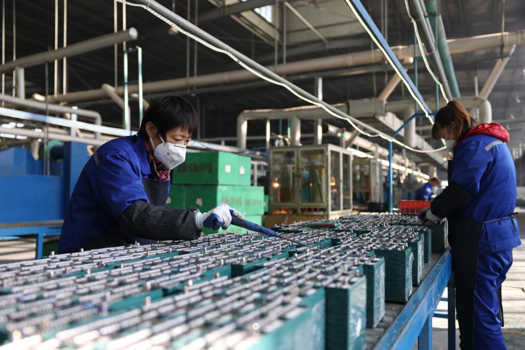 在河北超威電源有限公司,工人們正在檢測產品。新華社記者張瑋華 攝