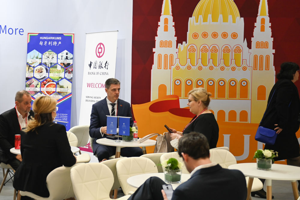 外國企業代表在第三屆中國—中東歐國家博覽會暨國際消費品博覽會中東歐展館洽談(5月16日攝)。新華社記者 黃宗治 攝