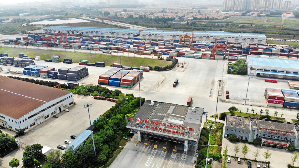 俯瞰上合示范區多式聯運中心(6月1日攝,無人機照片)。新華社記者 李紫恒 攝