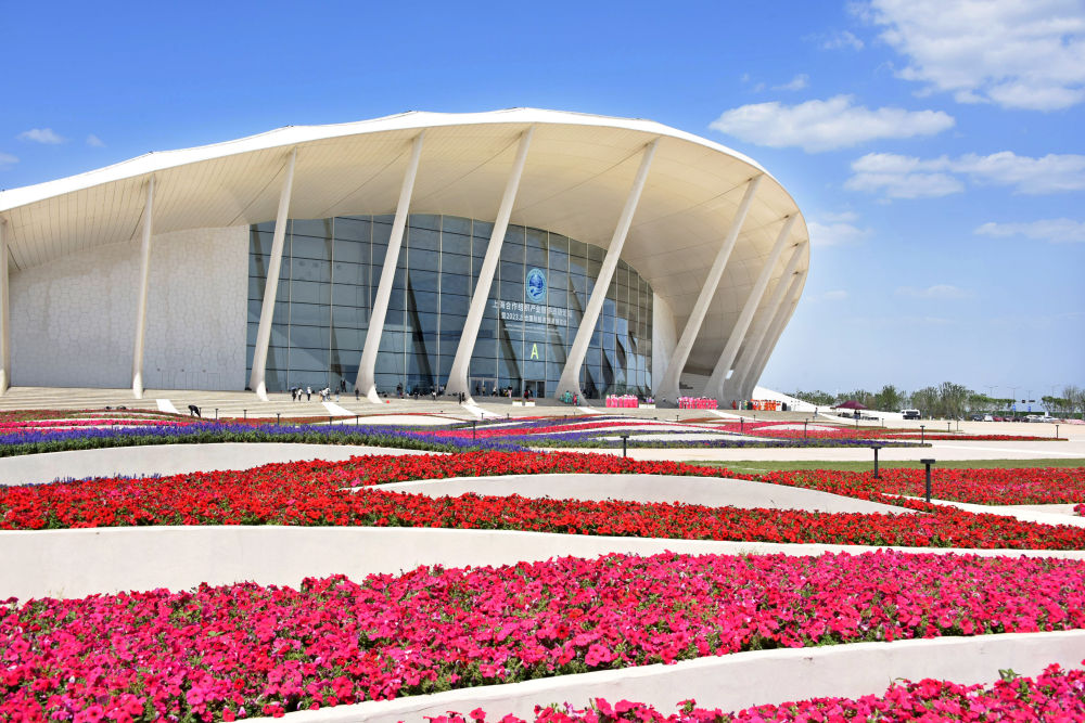 位于中國—上海合作組織地方經貿合作示范區的青島·上合之珠國際博覽中心一景(5月22日攝)。新華社記者 李紫恒 攝