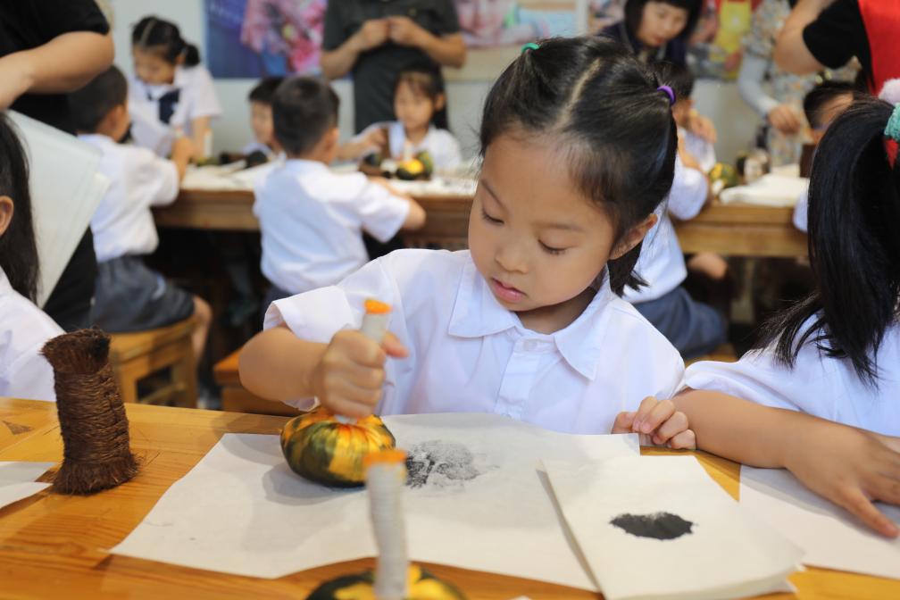 7月5日,孩子們在山西省介休市張壁古堡景區體驗拓碑。新華社記者 解園攝