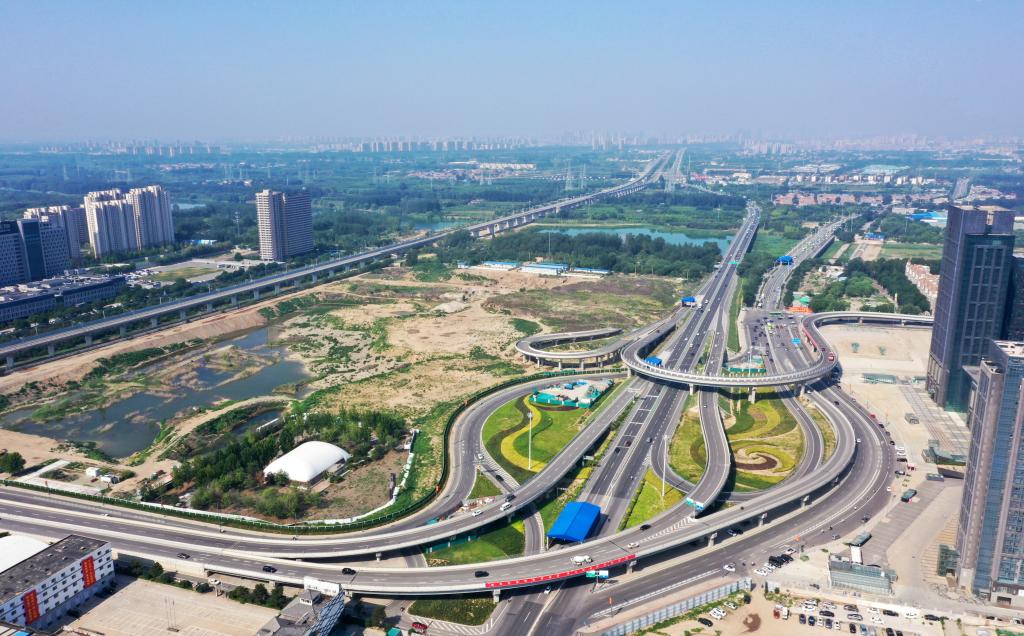 京唐城際鐵路(燕郊段)及改造后的通燕高速燕郊出口立交樞紐。(受訪者供圖)