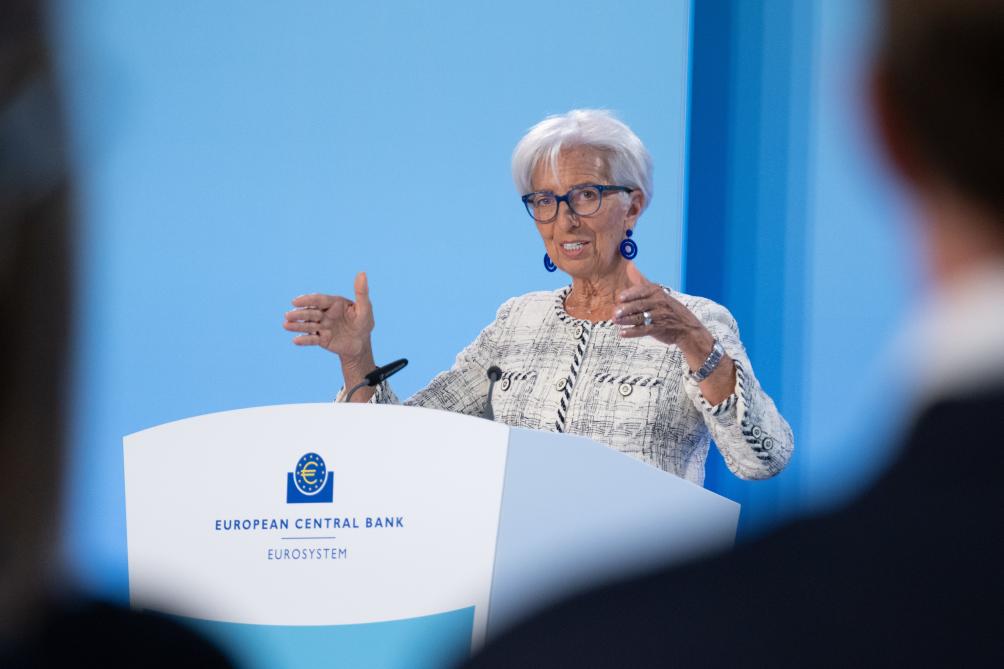 6月15日,歐洲中央銀行行長拉加德在德國法蘭克福歐洲央行總部舉行的新聞發(fā)布會上講話。(新華社發(fā),歐洲央行供圖)