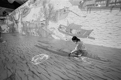 圖為游客在“盛世長卷”動態高清巨幕展區內近距離感受