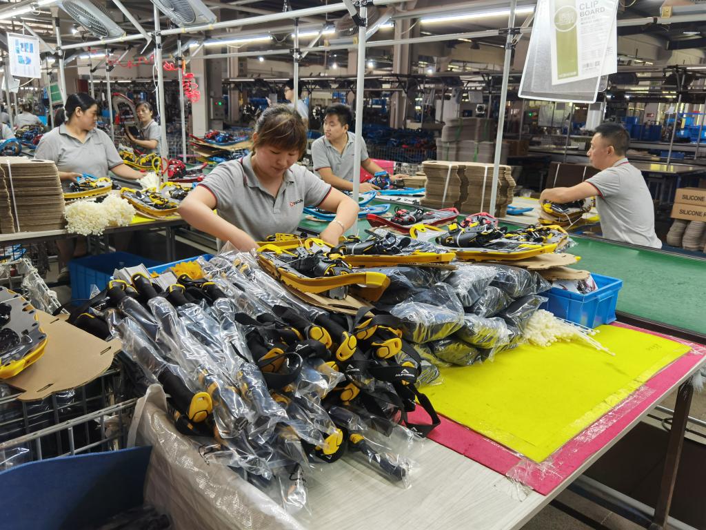 新華社寧波9月3日電(記者顧小立、邱世杰)走進浙江省寧波市寧??h深甽鎮興達旅游用品有限公司的生產車間,剛被搬下流水線的運動杖在操作臺上堆得滿滿當當,工人們正在進行最后的組裝檢查,將所有貨品打包完成后,發往客戶手中。