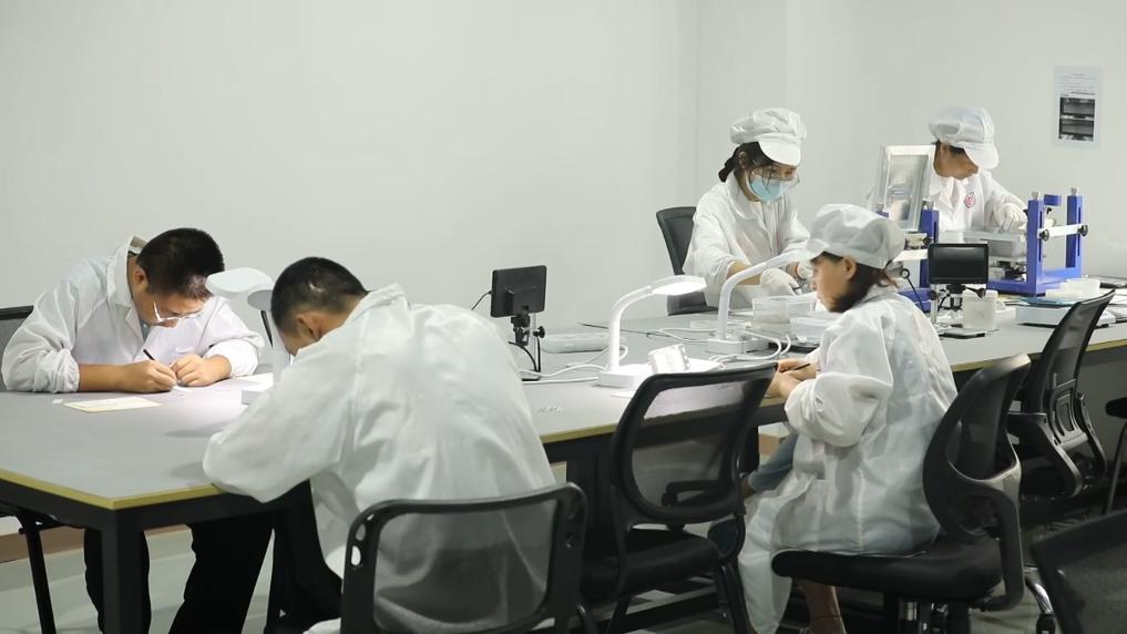走進西安秦創原灃東先進制造產業園,礪芯慧感科技有限公司的工人們正在進行芯片分揀工作。