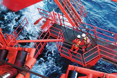 “深海一號”二期工程油氣管道日前鋪設完工。其中,天津鋼管提供的9425根無縫海管表現不俗。新華社發(fā)(韓慶 攝)