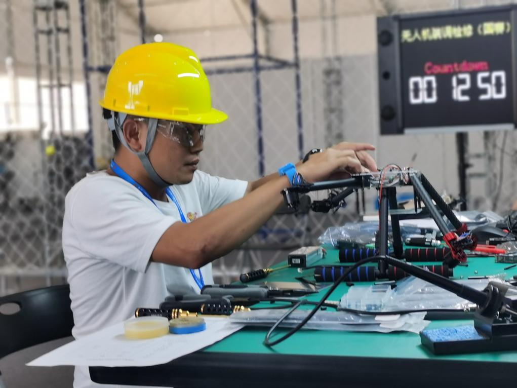 9月16日,選手參加無人機裝調檢修賽項比賽。(新華社記者 劉惟真 攝)