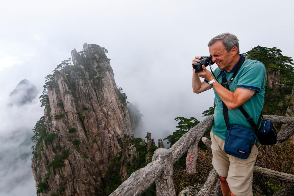 9月25日,外國游客在安徽省黃山市黃山風(fēng)景區(qū)游玩。新華社發(fā)(施亞磊 攝)