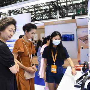 9月15日,在首屆深圳國際智慧養老產業博覽會上,觀眾在展臺了解智慧養老產品。新華社記者梁旭 攝