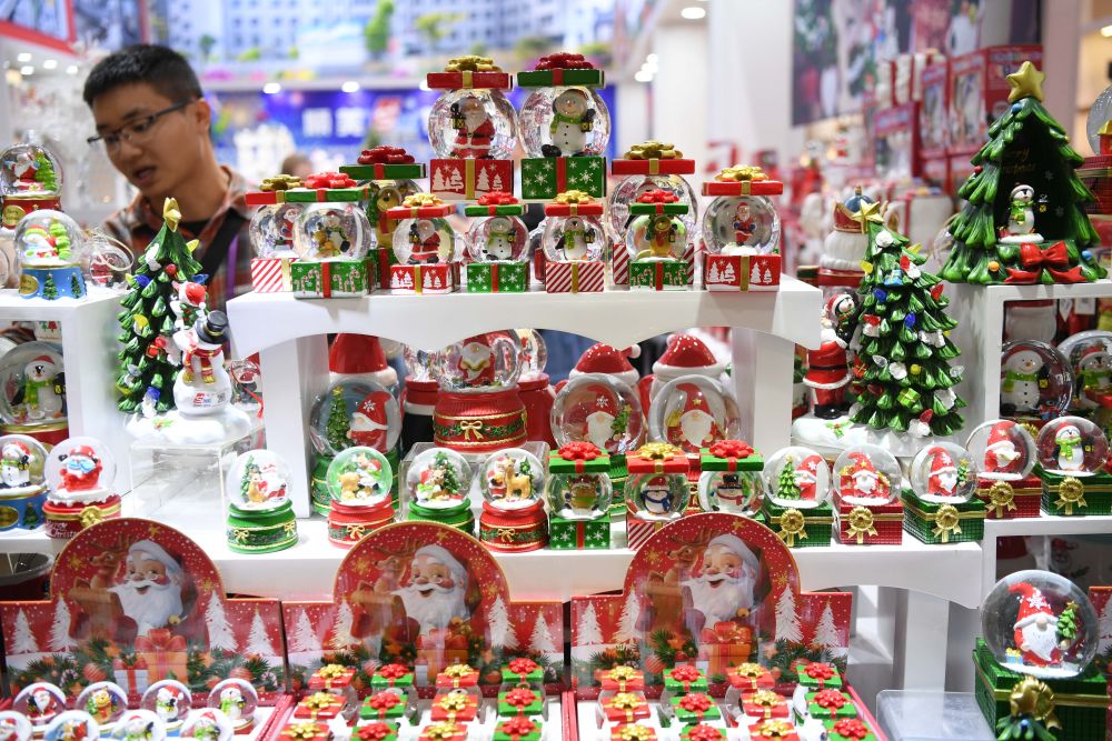 這是2023年10月23日在廣交會上拍攝的圣誕飾品展臺。新華社記者 鄧華 攝