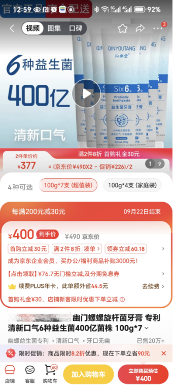 京东电商平台直接标称的“幽门螺旋杆菌牙膏”(图片来自京东APP)