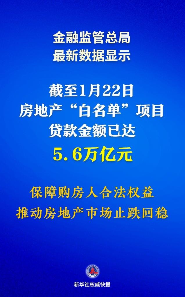 金融监管总局副局长肖远企1月23日在国新办发布会上表示,截至1月22日,房地产“白名单”项目贷款金额已达5.6万亿元。